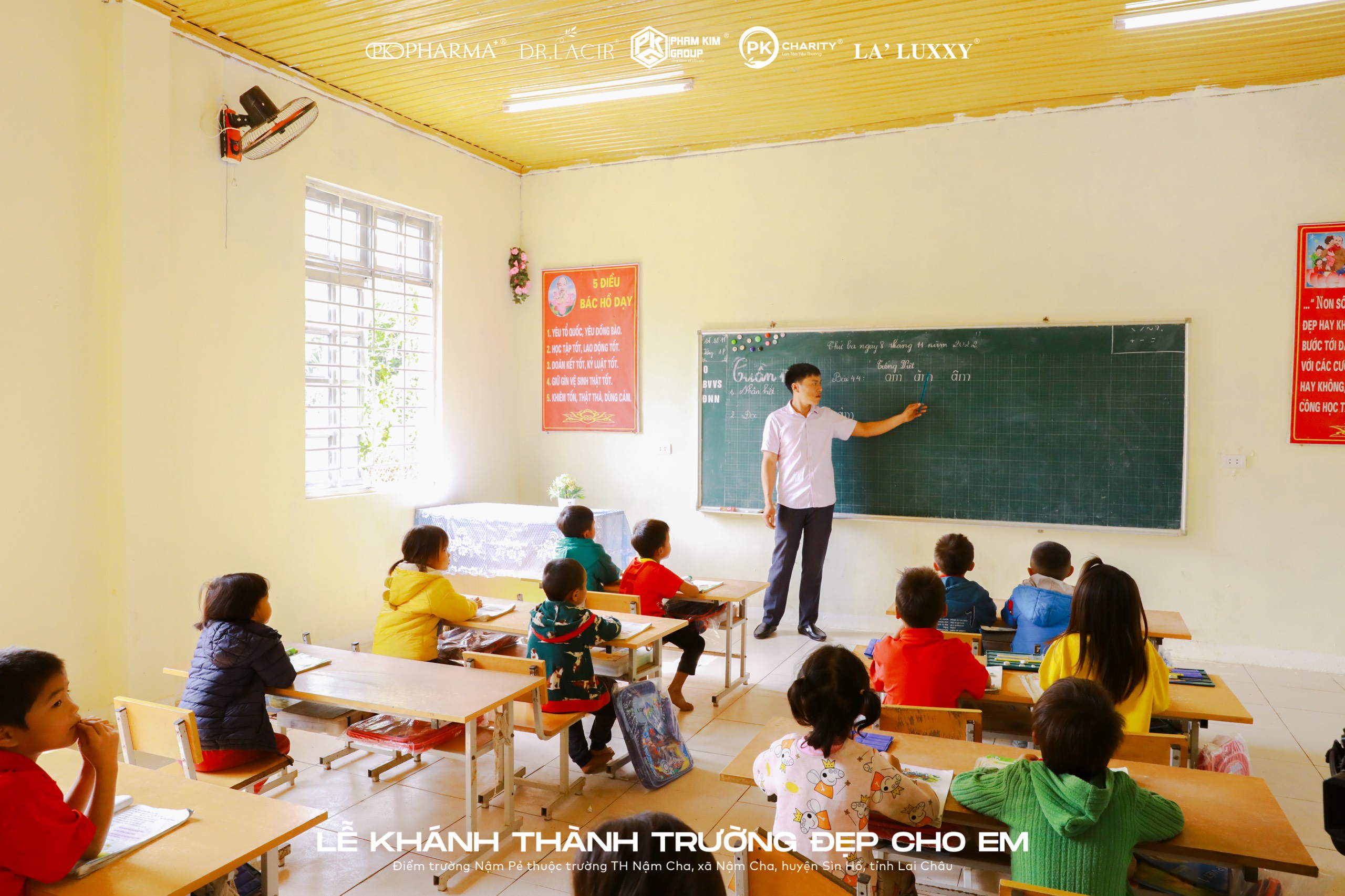 Để tạo động lực cho các em đến trường, Phạm Kim Charity đã quyết định tài trợ toàn bộ chi phí xây mới cho điểm trường bao gồm 2 phòng học và 1 bếp ăn, sơn sửa lại lớp học cũ. Toàn bộ chi xây dựng hơn 770 triệu đồng được trích từ Phạm Kim Charity – quỹ do các thành viên trong hệ thống đóng góp hàng tháng thông qua các hoạt động kinh doanh. Phần chi phí còn lại gồm lập và thẩm định dự án, giải phóng mặt bằng và một số chi phí quản lý hành chính do địa phương đối ứng.